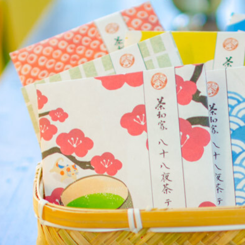 「八十八夜茶 ティーバッグ」は、かわいい和柄の包みに、品評会で多くの人に認められている掛川深蒸し茶の八十八夜茶のティーバッグが詰められた商品です。