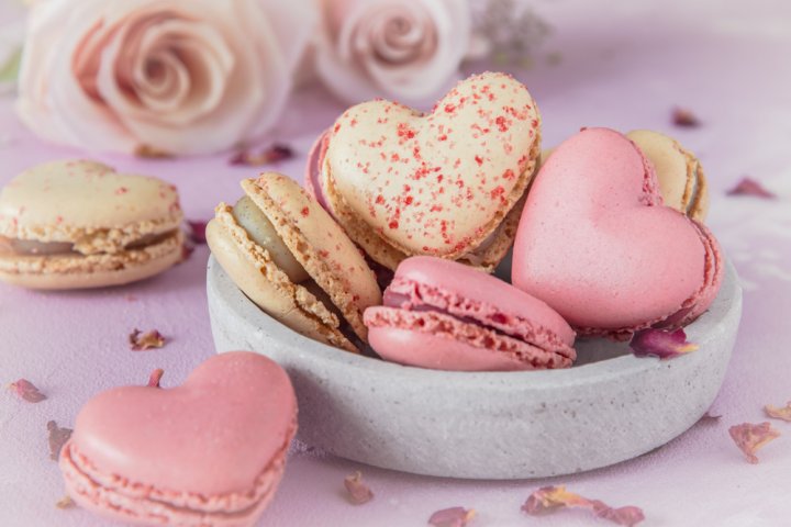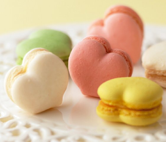 定番の丸型のほかに、バレンタインのロマンチックな気分を盛り上げたい人におすすめのハート型のマカロンも展開されています。