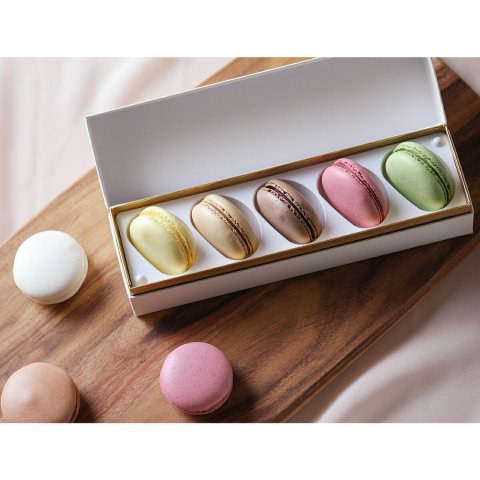 パティシエがひとつひとつ手作りするマカロンは、サクサクとした生地と滑らかなクリームのコラボレーションが魅力です。美味しさをいっそう引き立てる独特の食感でも高く評価されています。